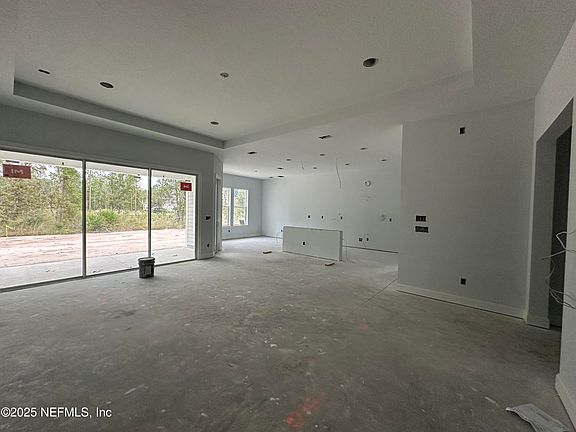 This stunning single-story home features the award-winning ''Lola'' floor plan by MasterCraft Builder Group. The 4 bedroom, 3 bath and spacious 3 car garage home is located in the gated community of Hidden Creek at John's Island in Silverleaf. The chef's kitchen boasts double-stacked white shaker cabinets, quartz countertops, and Electrolux appliances, including a 36'' 5-burner gas cooktop, built-in oven/microwave, and French door refrigerator. A pocket office is tucked between the kitchen and pantry. The large covered lanai overlooks the backyard-perfect for relaxing or entertaining, with plenty of room for a pool. The luxurious primary suite includes an oversized shower with dual shower heads and separate vanities. Washer and dryer included in the oversized laundry room, connected to the primary walk in closet. Don't miss this opportunity to live in one of Silverleaf's most desirable neighborhoods, all with no CDD fees!