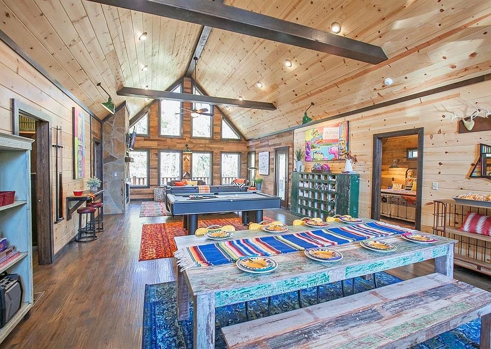 Secluded and convenient. Discover the epitome of luxury living in this stunning cabin nestled within the sought-after Timber Creek Trails subdivision of Broken Bow. Surrounded by the tranquility of mature pine trees, this private retreat offers the perfect blend of seclusion and convenience, just minutes away from the lake, restaurants, shopping and entertainment options that make this location so desirable. Built in 2017, this traditionally inspired cabin exudes charm and elegance. As you step inside, you'll be greeted by an open, airy, and bright living space that instantly captivates. The well-kept interior is a testament to the meticulous care given to this vacation rental investment, ensuring a comfortable and memorable stay for guests. The cabin boasts a thoughtful layout, providing both privacy and shared spaces for socializing. Relax in the cozy living area, where large windows offer panoramic views of the surrounding pine trees. A crackling fireplace adds warmth and ambiance, creating the perfect spot to unwind after a day of outdoor adventures. The location of this cabin is truly a standout feature. The proximity to the lake, restaurants, shopping and entertainment venues ensures that you have everything you need at your fingertips. Whether you're in the mood for retail therapy, a delectable meal at a local eatery, or a night out enjoying live music, you'll find it all within a short drive. Investing in this well-maintained vacation rental promises a rewarding opportunity for those looking to enter the thriving hospitality market. The popularity of Broken Bow as a tourist destination guarantees a steady stream of guests seeking the perfect blend of luxury and seclusion. Don't miss your chance to own this exceptional cabin in Timber Creek Trails. Embrace the serenity of the mature pine trees, the convenience of nearby amenities, and the potential for a lucrative investment. Secure your slice of paradise today!
