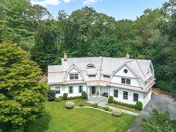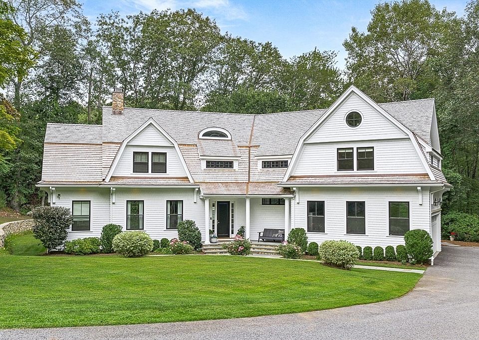 Once in a while, a home comes along that draws you in and takes your breath away. Situated on a 1.98 acre lot on a serene cul-de-sac in Southside Weston, this young shingled residence will win your heart. Enter into the foyer with 28 foot ceilings & immediately notice the thoughtful layout, incredible attention to detail and finely crafted finishes at every turn. The superbly designed kitchen offers brilliant quartzite countertops, top of the line appliances, extra long island with built in banquette seating & butlers pantry. It adjoins a spacious family room with tray & beadboard ceilings. The primary ensuite offers fireplace, deck, show stopping walk in closet and stunningly designed bath. Four additional & sizable ensuite bedrooms. The finely finished lower level with high ceilings houses a rec room, media room, playroom, full bath & kitchenette. Outside, a bluestone patio provides serene relaxation & entertaining spaces with built-in-grill & flat backyard.