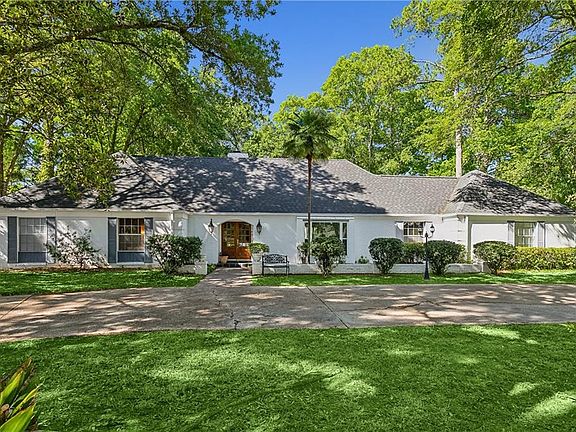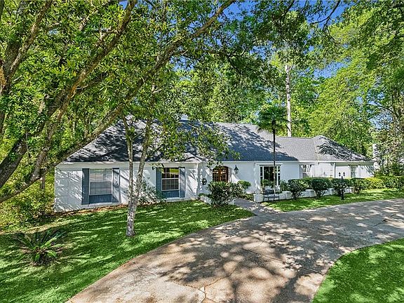 This stately home, nestled in the shade of a park-like setting in Covington Country Club, is available for the first time in nearly 55 years. This 4 bedroom, 3.5 bath, quality built residence maintain a timeless beauty, with its bricked cornerstone koins, arched entranceway, and imposing roof line, which hints to the architectural style of a French Chateau. That mood even continues inside at the entrance foyer, with its slate floor, French doors, and elegant curved staircase. Stepping through French doors into the backyard takes you to a courtyard with a refreshing pool and stand-alone cabana. Beyond that, a huge shaded backyard that can become your own private park. The primary suite is downstairs, and a large room adjacent it could be a study, nursery, or a 5th bedroom. Upstairs, 3 large bedrooms overlooking the pool and backyard. Truly a house that lives large with spacious rooms. There's huge closets, an enclosed 2-car garage, and walk-in attic offering lots of storage. Golf is in your footsteps on the neighborhood golf course and the clubhouse offers the community a social gathering spot. High ground, low flood risk, the best of local school districts, convenience to 1-12, 190, and Causeway offer just a few of the excellent reasons you'd choose to make this home.