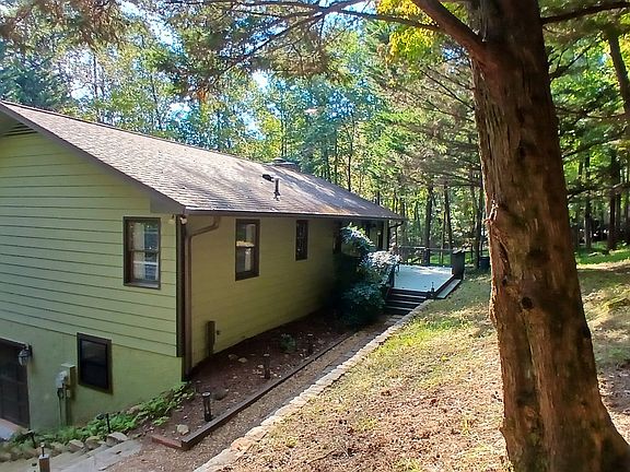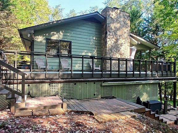 An absolute MUST-SEE property! Located in the coveted Skylake Community, with hiking trails, clubhouse, two lakes, pickle ball courts and many social clubs and activities, this picturesque home has recently experienced a TOTAL MAKEOVER! Nestled in nature, the home sits well back from the road and on 2 lots that have been combined to pay only one HOA fee. There is a long list of upgrades, but to name a few, a completely NEW gourmet kitchen, tastefully finished with updated appliances, new vent hood, new cabinets and new granite counter tops. All bathrooms have been similarly updated, and the Primary en-suite bath has an all-tile steam shower. All the floors have been refinished or updated. The open deck wraps around to the covered porch which is screened at the end that adjoins the primary bedroom. The open kitchen-dining-living room has a vaulted ceiling with natural wood beams, with a stone fireplace serving as the focal point of the living area. On the terrace level is a full bathroom, bedroom and den area as well as the garage which could be used as a workshop. The den opens up onto a paved patio area that invites you outside to enjoy the private yard that has been carefully kept in a natural landscape. Walkways have been built from the patio to the yard and from the deck to the yard, for easy access. Ample storage is available inside the home as well as outside dry storage under the deck. Don't miss this opportunity to own an affordable, updated, home in Skylake with TWO lots! The septic system has been upgraded to accommodate a 4-bedroom home if the terrace level den is needed for a 4th bedroom.