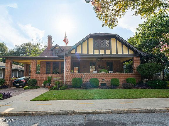 Welcome to this beautiful craftsman Tudor home in the heart of the popular Historic Vineville Neighborhood. This home has three bedrooms plus a study, and features a wide front porch, a stately wood-burning fireplace flanked by bookcases in the living room, a generous dining room with beautiful windows and molding, a kitchen plus keeping room/den, and a large mud room. The primary bedroom has spouse & spouse closets and a private ensuite bathroom. The spacious secondary bedrooms have beautiful natural light. The yard is rich with mature landscaping, beckoning you to enjoy nature and friends on the wonderful brick patio. Also, there is a fantastic two car garage that would make a great workshop, man-cave/she-shed, or secure parking. The current owner has loved this home for 5 decades! Schedule a showing today!! I'm confident you'll see why and fall in love with it too.