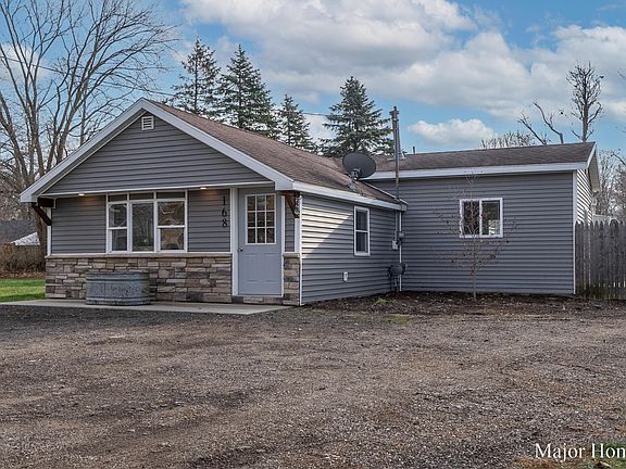 Take a look at this adorable home in the heart of Saranac! This 2 bed, 1 bath home is much larger than it appears & is move-in ready! The primary bedroom has a HUGE walk-in closet that you must see to appreciate! New buyers can enjoy the fully fenced-in yard w/ deck and built-in grill area and the custom-built storage shed. Recently the home received fresh neutral paint colors throughout, updated flooring, and the following were brand new in 2016 - Furnace, Water Heater, Fridge, Oven & Microwave! The home is also located within walking distance to the Fred Meijer Heartland Trail, Village of Saranac library, Local Ice Cream store, Scheid park and dollar general. Book your showing today! All offers due 5pm Friday, 12/2.
