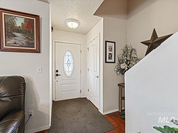 This beautiful 4-bedroom, 2.5-bath, 2-story home offers 2,310 sq. ft. of comfortable living space, thoughtfully designed for both relaxation and entertaining. The spacious kitchen opens to a cozy living area, complete with a pellet stove for those chilly Idaho evenings. Upstairs, you’ll find a versatile bonus space—perfect for a home office, playroom, or media area—alongside the primary suite featuring dual sinks and a walk-in closet. Step outside to enjoy the covered back patio and a generously sized backyard with RV parking, underground sprinklers in both front and back, and room to garden or play. The neighborhood boasts three serene ponds, adding to the peaceful atmosphere, and you’re just minutes from the Boise River for fishing, floating, or evening walks.