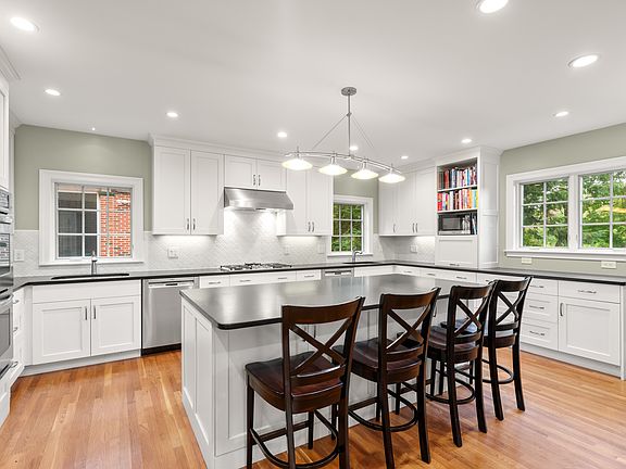 FURNISHED RENTAL - Magnificent Brick Tudor Single Family residence in Washington Square near Brookline High School, Runkle School (K-6), shops, restaurants and "C" + "D" trains (Green Line) to Longwood Medical, Boston College + downtown Boston. Five bedrooms, 3.5 bathrooms and 2800+ SF. First floor: Sprawling formal dining room with decorative fireplace, powder room, formal living room, and sunroom with large arched windows, lovely screened in porch. Chef's kitchen with large center island, custom cabinetry, granite countertops and stainless steel appliances. Second Floor: Four large bedrooms plus den/office, sun porch off one bedroom. Primary bedroom with large closets + newly renovated en suite bath with large soaking tub. Laundry room with storage on same/2nd floor. Basement: One bedroom with full bath good for au-pair suite or guest room + bonus room good for office/play room/TV room with fireplace. Two zone central air conditioning and gas heat. Plenty of additional storage in finished basement. Two-car garage with direct entry plus 4 more parking in driveway. Manicured landscaped yard with front and back patios complimented by outdoor furniture, Weber gas grill + plus raised bed herb garden. Flexible start date August 1-15 for a one year lease with flexible end date. Sorry no smoking and no pets. All utilities included water/sewer, gas, electricity etc. are extra Tenant to pay one month broker fee and all utilities including gas, electricity, water/sewer. Tenant responsible for landscaping and snow removal.