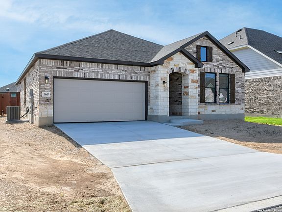 Welcome to the Leander, a thoughtfully designed one-story home that blends comfort, style, and modern living. The open-concept layout is perfect for gathering and everyday life, with a gourmet kitchen featuring a walk-in pantry and center island that flows seamlessly into the family room. Three large windows fill the space with natural light and frame views of the covered patio, connecting indoor and outdoor living. Tucked at the back, the private primary suite offers a luxurious retreat with a spa-inspired bath, including a garden tub, oversized shower, dual vanities, and a generous walk-in closet. Two secondary bedrooms share a well-appointed bath, while a dedicated study provides a versatile space for work or hobbies. Thoughtfully designed to support both connection and privacy, the Leander makes single-story living effortless, stylish, and perfectly suited to a modern lifestyle. This home features design selections thoughtfully curated by our professional studio team. Each finish, from flooring and cabinetry to countertops and special touches, is chosen with care to create a cohesive and beautifully balanced look. Guided by timeless design principles and inspired by modern lifestyles, the result is a home that is both stylish and welcoming from the moment you step inside. This home is located in Megan's Landing, a vibrant family-friendly community nestled in the scenic Texas Hill Country. Enjoy quick access to shopping, dining, and entertainment, plus nearby outdoor escapes like the Medina River and Government Canyon State Natural Area. With top-rated Medina Valley ISD schools, Megan's Landing offers the perfect blend of natural beauty, convenience, and community for your family's next chapter.