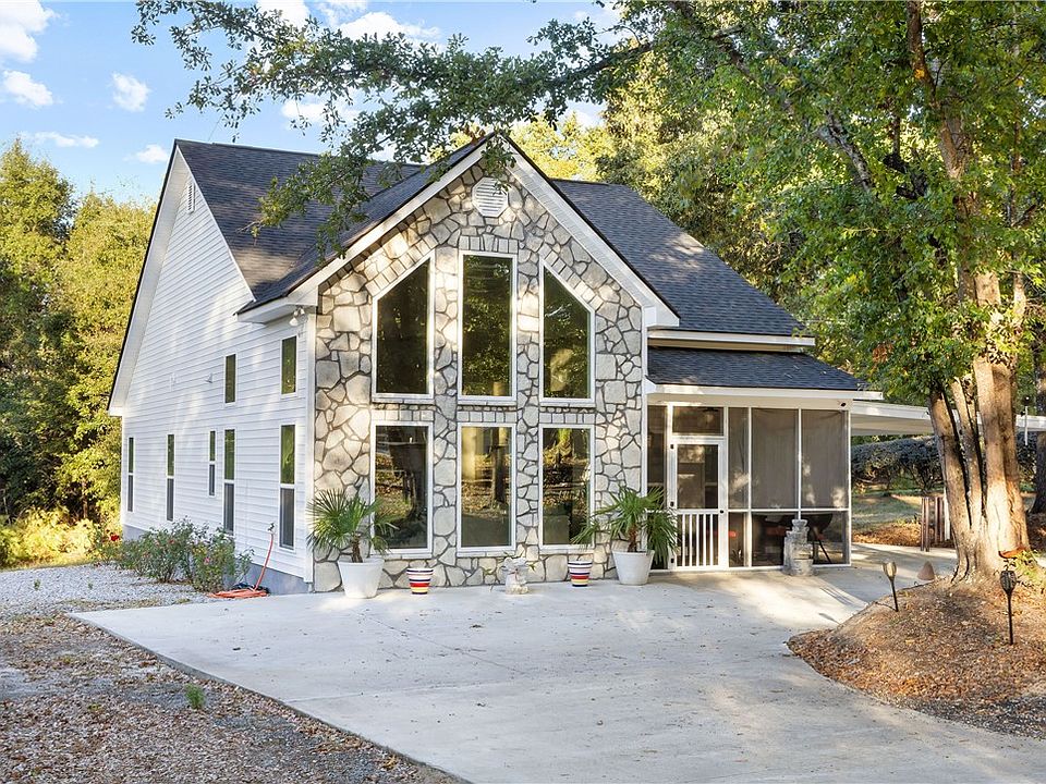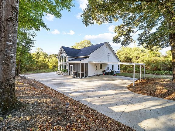 Experience peaceful country living with all the benefits of modern construction in this stunning 3 br, 2 bath home, newly built in 2022 and set on 3 wooded acres. Designed with a unique and inviting floor plan, this home features a vaulted ceiling and a striking wall of windows that flood the living space with beautiful natural morning light. The open-concept kitchen shines with granite countertops, upgraded cabinetry, and a large island making it ideal for cooking, dining, and entertaining. The primary has a spacious bedroom with a walk in closet. The primary bath also has granite countertops, double vanity and jetted tub. Step outside to enjoy the screened porch, perfect for relaxing year-round, and a double carport that provides convenient covered parking. Mature trees surround the property, offering excellent privacy and a peaceful, natural setting. If you're looking for a move-in-ready home with modern finishes, acreage, and privacy, this one checks all the boxes.