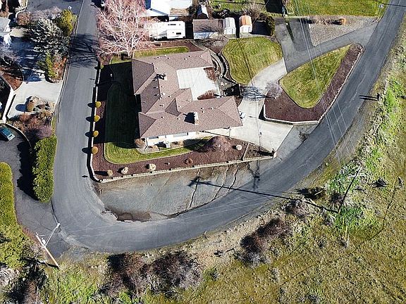 Large lot with room for shop and large circular driveway with lots of parking. Separate driveway with RV hookups and a beautiful view of the valley.