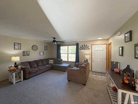 Welcome to this inviting 3BR/2.5BA ranch that's been lovingly updated. This popular split bedroom design home is just moments from Christensen Park, making it ideal for those who appreciate both indoor comfort & outdoor recreation. The heart of this home features an oak kitchen that's complete with a breakfast bar, all major appliances & clever storage solutions including 3 lazy susans & a pantry with convenient roll-out shelves. Cute remodeled main floor laundry room adds practical luxury to daily routines. Inside, you'll discover thoughtful upgrades, from the new lighted Hunter ceiling fans with remotes to the updated main bathroom in 2021. The primary bedroom offers a peaceful retreat with a generous walk-in closet & a private adjoining bathroom. The heated & cooled attached garage, enhanced with a new mini-split system in 2024, provides year-round comfort for vehicles & potential man cave. Additional storage awaits in the utility shed, while the partially finished lower level rec room offers endless possibilities for family entertainment. New high-efficiency Carrier furnace & central air system installed in 2024. Recent improvements including a new composite deck in 2023, perfect for entertaining or quiet evening relaxation. The stunning stamped concrete landscaping & firepit create an outdoor oasis that extends living space beyond the home's walls. Invisible pet fence for pet safety. Located 10 min north of Chillicothe. Start creating your new memories here!