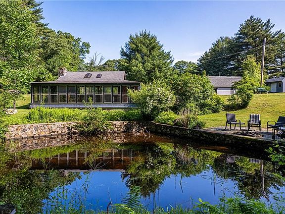 **OFFERS DUES SUNDAY 6/25 AT 3PM**serenity surrounds this idyllic property in Scituate, one of Rhode Island's most beautiful rural communities, a neighborhood called "Hope." Nearly 4.5 tree-lined acres provide quiet space to roam - a lush green wall of trees and landscaping creates complete privacy. Fall asleep under the full moon to gentle waterfall sounds while the running stream full of turtles and fish passes through a stone-walled pond. The home has a newly remodeled kitchen and full bathroom; the design execution is perfect in this open floorplan contemporary home. Whether cooking at the oversized kitchen island or watching the snowfall in the upstairs soaking tub, you should enjoy this magical property with all your senses. Upstairs holds the full bath, three spacious bedrooms, and laundry. The primary bedroom has a private deck overlooking the pond and green space. You can entertain guests at the water's edge firepit or dance the night away in the screened pavilion in front of the stone fireplace. The sparkling swimming pool and pool house are perfect for cooling off these summer days. The enormous two-car garage/workshop with an upstairs studio is heated for winter projects. A new septic system is in place, and the tool garage is perfect for your riding mower, tools, and supply storage. If you're seeking a truly unique property, call now!