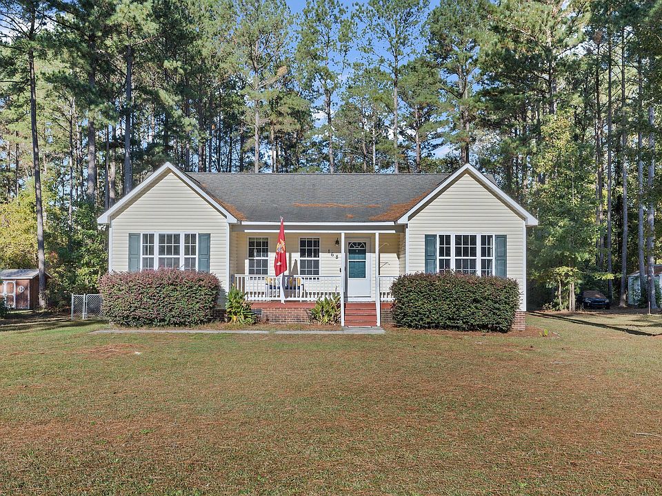 Experience country living at its best. Nestled on nearly an acre (.99 acres) in a peaceful, no-HOA community, this beautiful ranch-style home offers the perfect blend of privacy, comfort, and convenience. A wooded backdrop frames the partially fenced backyard, creating a serene setting ideal for quiet mornings or relaxed evenings outdoors. Inside, the open-concept design welcomes you with wonderful vaulted ceilings and abundant natural light from the home's stunning morning sun exposure. The spacious living area flows seamlessly into the dining and kitchen spaces, perfect for modern living and entertaining. The home features 2 full baths and 3 great size bedrooms. Enjoy tranquil country surroundings while remaining just minutes from shopping, dining, and commuter routes!