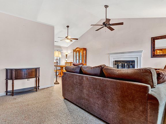 The beautiful views from this corner lot welcome you to this maintenance free one-level living home. From the great room with its' vaulted ceiling and gas logs to the covered patio there is a lot to love about this home - a 2 car garage surrounded by shelving, all the appliances, including washer/dryer, ceiling fans throughout. AND a brand new HVAC system purchased in 2023. If you are looking for one level living in a great neighborhood, you don't want to miss this one!