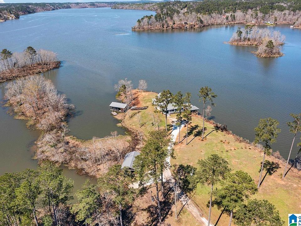 Lay Lake Estate Home- one of the most admired and talked about Lake homes on Lay! Point Lot with deep water & 1100'+/- of Shoreline! Natural serenity at its best with surrounding immense Lake views from every window! Experience seclusion & relaxation in this privately tucked away Lakeside Community- only 10 miles from Peach Park. Custom Build w/ 3100+/- Sq ft, 1100'+/- of Shoreline, 2.5+/- Acres, Main Channel, 2 Slip Boathouse/lift, 10X15 Swim Pier, 10X10 Storage on Boathouse, 16X20 Covered Pavilion over the water, 300 SF Boardwalk that leads to 300 SF Pier- 2 Green Monster Fishing Lights. 24X40 Covered Equipment Shed with new storm shelter. 5 Bedrooms & 2 loft guestroom areas allows for sleeping the largest of families and could serve as rec areas or teen space! Main level Master suite is designed to have screened deck access, newly added soaking tub in Master Bath Luxury retreat. New wood burning Fireplace in Great Room & revamped Pole Barn!