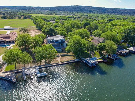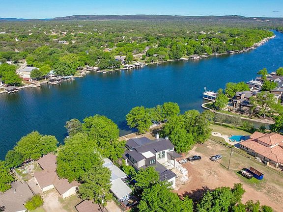 A rare find on Lake LBJ! Over 1 Acre Lot with 90’ waterfront! This brand-new open floor plan home will be complete soon for summer with 5 bedrooms, 5 full baths, ½ bath, and built-in bunk area. Two primary bedrooms on the ground floor, spacious kitchen with high-end appliance package including wolf stove, large center island with seating, dining area and great room combination with fireplace. A game room on the ground floor opens to outdoor BBQ grill, refrigerator, bar/sink and outdoor fireplace. The property has a 3-car garage, swimming pool, hot tub, boat dock, landscaping and flat work package included. Double the size of this estate if you purchase the lot next door! Call for gate code into The Ranch on Lake LBJ.