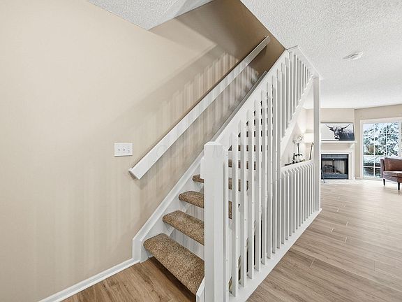 Updated McNeil Farms Condo with Modern Finishes, Fireplace & Partially Finished Lower Level. This beautifully updated 2-bedroom, 1.5-bath condominium located in the desirable McNeil Farms community of Blacklick. Offering 896 sq. ft. above grade with a full, partially finished basement, this home combines comfort, functionality, and modern appeal. The main level features new LVT flooring throughout the living and dining areas, creating a seamless flow and contemporary look. The galley-style kitchen includes a convenient pass-through to the dining space, plus a new refrigerator and dishwasher. A cozy fireplace adds warmth to the living area, while a sliding glass door opens to a private outdoor space with fencing on both sides for added privacy. Upstairs, you'll find two well-lit bedrooms with generous closet space and a refreshed full bath. The lower level adds flexible living potential with a partially finished recreation area, a half bath, and a dedicated utility/laundry room with extra storage. Freshly painted throughout in warm, neutral tones, this home feels inviting and move-in ready. Additional features include new plush carpeting on the upper level, freshly painted white trim, and an attached one-car garage. The McNeil Farms subdivision offers wonderful amenities, including a clubhouse, fitness center, and outdoor in-ground swimming pool, perfect for an active and social lifestyle.