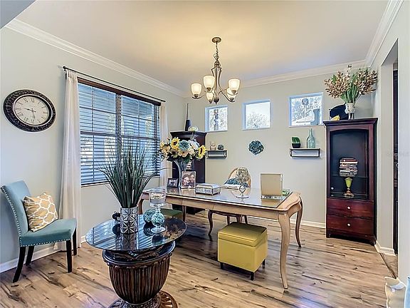 Welcome Home! This stunning 5-bedroom, 4-bathroom residence is located in the highly sought-after gated community of Estates of Auburndale. With over 3,500sq.ft., from the moment you enter, you’ll appreciate the thoughtful layout, elegant finishes, and generous living spaces perfect for both everyday living and entertaining. Downstairs features high ceilings, a spacious bedroom with a full bath conveniently located just outside the door—ideal for guests or multigenerational living. The formal dining room boasts crown molding and rich laminate flooring, while the remaining common areas showcase easy-care tile. The chef’s kitchen is a true centerpiece, offering granite countertops, 42-inch espresso cabinets with crown molding and glass inserts, stainless-steel appliances, a butler’s pantry, and a huge walk-in pantry for ample storage. Enjoy family gatherings in the bright family room adorned with crown molding and recessed lighting, dine casually at the breakfast bar illuminated by pendant lights, or relax in the kitchen nook that looks out to the lanai and spacious backyard. The laundry room is conveniently located downstairs and features built in folding tables along with the washer and dryer that convey. The wrought iron stair railing adds a touch of sophistication as you head upstairs! Upstairs, the large loft provides a perfect flex space for a media room, game room, or home office. The primary suite is spacious and inviting, featuring an ensuite bathroom with dual vanities, cultured marble countertops, a garden tub, separate shower, private water closet, and a massive walk-in closet. Three additional bedrooms and two full bathrooms—including one ensuite—complete the upstairs layout. Located in a peaceful, gated community with beautiful surroundings, this home offers comfort, style, and convenience. Don’t miss your opportunity to make this your dream home in the Estates of Auburndale!