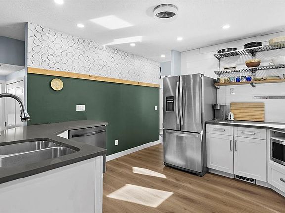 Welcome to this fully renovated 4-bedroom, 3-bathroom detached home in the heart of Riverbend. Blending modern finishes with timeless character, this property is move-in ready and designed for both comfort and style. A charming front porch sets the tone for what’s inside. The main floor features a cozy living/reading room, a spacious dining area, and a farm-inspired kitchen complete with quartz countertops, induction range, chrome and stainless steel appliances, exposed white wood backsplash, and open shelving. The adjoining living room showcases a tiled wood-burning fireplace with gas assist and opens through double doors to a large patio. A bedroom with 2-piece bath and convenient main-level laundry complete the floor. Upstairs, the primary suite offers custom floor-to-ceiling closets and a stunning ensuite with bold green tiled shower and gold fixtures. Two additional bedrooms and a renovated 4-piece bath provide plenty of space for family. The finished basement includes a large rec room with plush carpeting, a dedicated tv area and a built-in play set (removable if desired for more entertaining space), plus a massive utility/storage room. Outside, enjoy a south-facing backyard with pergola, patio, and custom built-ins ready for an outdoor kitchen. The heated, finished double garage connects directly to the home. Recent exterior updates include siding, doors, windows, and shingles- fantastic value for homeowners! Nestled in family-friendly Riverbend, this home is close to schools, playgrounds, and Carburn Park’s scenic pathways. With easy access to Glenmore and Deerfoot Trail, commuting anywhere in the city is simple. Riverbend combines community charm with convenience, making it one of Calgary’s most desirable neighbourhoods.