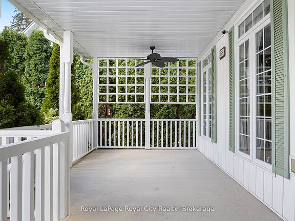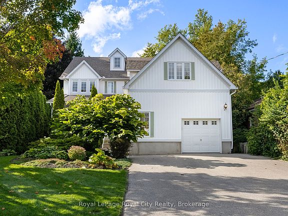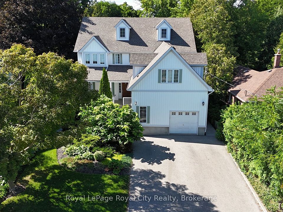 Welcome to 168 Palmer Street, a custom-built home perfect for families seeking both luxury and convenience. Located steps from St. Georges Park, this home is also just a short walk from downtown Guelph and the GO station and walking distance to all schools and shopping. With over 4,700 square feet of exquisite living space, this property was designed for modern living. The main floor features a welcoming front porch, grand entrance, a gourmet eat-in kitchen with built-in stainless steel appliances, pantry, and a bright, spacious family room with a cozy gas fireplace, built-ins and walk out to the back yard, the formal dining room is a must see! There is also a main floor bedroom and three-piece bathroom that offer added flexibility. Upstairs, you'll find three generous bedrooms, each with its own ensuite bathroom. The fully finished lower level provides even more space to relax and entertain, with a large recreation room/games room, gas fireplace, a two-piece bathroom, and laundry room, with a laundry Shute! Step outside to discover your private oasis. The backyard is a true showstopper, featuring a beautiful SOLDA saltwater pool, hot tub, gazebo, and multiple patios and kids play centre all enclosed by mature trees. Excellent mechanicals, nine-foot ceilings and hardwood floors, complete this incredible offering.