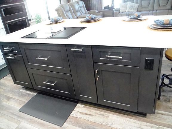 Phenomenal Property! You have no idea how many upgrades have been done. Sellers planned to stay here for the rest of their lives, but things have changed, so you have the benefits of all these abundant upgrades. Very open great room plan with an island kitchen with quartz countertops, soft close draws, pullouts, appliances in the last 2 1/2 years along with cabinets and countertops, incredible built-in oven with microwave also built-in above it. The fireplace in the living room is electric and can throw heat or just look lit for atmosphere. The home has drywall instead of paneling. Remodeled baths with a bidet in the master with a heated seat and remote controls, master bath mirror with controls on the mirror, walk-in closets. Floors are luxury vinyl with unbelievable plush carpet in the bedrooms. The 10X34 lanai and the backyard have automatic waterers for the lush plants. There is also a hookup for a generator (the generator is negotiable). Extra parking pad. This property is in the area that allows a cat or a dog up to 25 pounds. You own the 50X85 lot included in the price. This is an unbelievable property and the price is incredibly low for it. Measurements approximate.