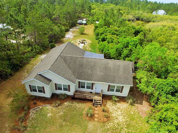 Located midway between Carrabelle and Eastpoint Florida is this 4 bedrooms 2 baths Modular home on a 1-acre lot. This home features an open floor plan with a large eat-in kitchen, 2 separate living areas and split bedroom plan. Laminate flooring throughout, vinyl in baths and no carpet. Master bath features double sink vanities, jacuzzi tub, and separate shower. Large master bedroom and a walk-in closet. New pump house & a new water filtration/soften system. New roof on the back porch, new steps on side entrance of the home, new boat & storage shed in rear of the house for all your stuff. Take a left from the driveway and walk to St. George Sound at the end of Quail Dr., take a right out of the driveway down the lane and go into Tates Hell to explore nature at its finest.