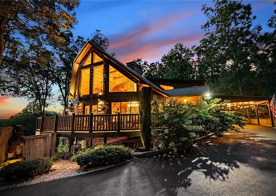 Large Price reduction, move in ready and poised for a motivated buyer looking to spend the holidays in the Blue Ridge Mountains! Come see why local agents have called this home "Beautiful, Gorgeous, and Better than other homes priced higher!" This beautifully designed and meticulously maintained 4-bedroom, 3-bathroom lodge like home, offers luxury mountain living at its finest. Situated on a private gated lot within an exclusive 13 lot neighborhood that is fully paved for easy access. This peaceful neighborhood has No Short Term Rentals which has kept the infrastructure wonderfully maintained with no disruptions. Conveniently located in Morganton—just 10–15 minutes from downtown Blue Ridge and Blairsville—this home perfectly blends rustic charm with modern comfort. Enjoy year-round long-range sunset views from over 2,000 sq. ft. of outdoor living space, including a 700+ sq. ft. four-season entertainment deck with fireplace, sliders, and a full outdoor kitchen with stainless steel appliances. The open-concept layout features spacious living and dining areas ideal for entertaining, while the fenced courtyard boasts a custom fire pit and dedicated corn hole area. The tranquil primary en-suite includes a huge walk-in closet, breakfast bar, screened porch, and private deck with Hot Springs hot tub. A separate laundry room on the main floor with ample counter and cabinet space, and a direct laundry chute from the upper primary bedroom. Additional highlights include a separate art or craft studio, large 2-car attached carport, fully replaced asphalt driveway, fully paved neighborhood roads, and expanded parking suitable for RV or 4-6 cars. Recent upgrades include a new HVAC system and water heater (2024), new Andersen windows, new Thor refrigerator and dual-fuel range in main kitchen, whole-house UV filtration system, recently re-stained exterior, full-house Generac generator, and 1,000-gallon in-ground propane tank. With its gated entry, private setting, and proximity to shopping, dining, and outdoor recreation, is a rare find combining refined mountain elegance with effortless comfort. You owe it to yourself to come check out 168 Rabbit Ridge Rd. You need to see it to appreciate it! There is even more to see, and this special home won’t be on the market long! Bonus, the majority of furniture can be negotiated with an acceptable offer! This home is a dream property ready and available to host all your holiday gatherings this year!