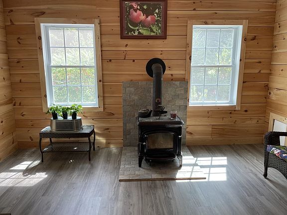 Picturesque 3 bedroom, 2 bath cape style post and beam home with a 1 car garage under in a private setting on 10.5 acres. With multiple solar power systems in place, no worries about losing power in a storm! Each of the 3 systems have different functions so there is no large draw down on one system. You can also shut down the solar and run the home off generators. The home is well insulated, vinyl sided and has a standing seam metal roof over a cold roof. Entry to the home is via the mudroom, the front porch, or through the basement side door. The main living area is an open floor plan; the kitchen has an island, shaker style cabinets with cinnamon finish; the mud room and living room have cathedral ceilings. Next to the kitchen is a pantry/laundry room for extra storage and convenience. There is a three-season porch opening off the dining area, with wide doors for extra entertaining space when gathering with family and friends. A first-floor bedroom and three-quarter bath complete the main level. Upstairs there are two bedrooms and a three-quarter bath. Outside there is a greenhouse/shed if you are not inclined to garden, wood shed, and a dog fence with a doggie door through the mud room to reach the yard. The paved driveway loop and fence with lights along the side of the driveway add to the curb appeal of the home. There are two apple trees and two peach trees along with perennial shrubs and plants to enjoy. Close to I-89 for commuting ease, and stores for convenience.