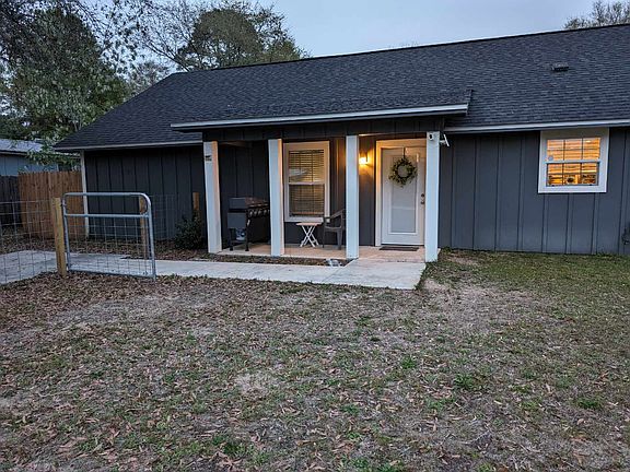 3 bedroom, 2 bathroom home built in 2018 with fenced in yard nestled in the heart of Defuniak Springs, FL! On one side, you're greeted by a large front porch, perfect for enjoying your morning coffee, and on the other, a small side porch with room for a grill. Step inside to an open concept living and kitchen area with updated appliances, ideal for entertaining guests or relaxing after a long day. Large master bedroom with a walk-in closet and master bath with a walk in shower. The second and third bedrooms offer flexibility for guests, workspace, or home gym. With its convenient location near amenities, schools, and parks, this home offers the perfect blend of comfort and convenience for modern living!