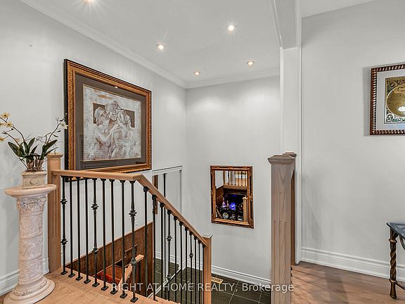 Affordable Luxury in North Richvale: Meticulously renovated from top to bottom, this raised bungalow unites timeless elegance with modern sophistication. The Starlight Galaxy Granite foyer sets a dramatic tone. Over 2300sf of living space! (Includes lower level). New custom-designed staircases sweep to the upper and lower levels, highlighting exquisite craftsmanship. An upgraded chef-inspired kitchen showcases maple cabinetry, granite counters & floors, and flows seamlessly into the formal dining room, where a crystal chandelier adds brilliance to every gathering. The sun-filled living room creates an uplifting space for both daily living & elegant entertaining. New engineered hardwood floors extend throughout, while professionally painted interiors in designer-selected Benjamin Moore finishes add crisp refinement. R60+ attic insulation ensures year-round comfort. A spa-inspired 5-pc bathroom features perfectly matched Starlight Galaxy granite countertops and floors, floor-to-ceiling porcelain, & a Jacuzzi tub, a private sanctuary for relaxation. The custom wood-paneled lower level transforms with ease, currently a home theatre with 7.1 surround sound, plus an executive office or 4th bedroom, a second bathroom, and direct garage entry for all-weather convenience. The fully customized double garage, accented with cinematic and automotive artwork, houses 2 large luxury SUVs, plus 4 more vehicles on the driveway, with a total of 6 parking spots! Newly landscaped gardens create a private backyard oasis, perfect for entertaining, seating up to 16 guests for summer BBQs or al fresco dining under the stars. All this, just a 5-minute walk to Hillcrest Mall, and close to top-ranked schools, parks, hospital, transit & new subway coming soon! Extras include: B/I dishwasher, washer/dryer, custom window coverings, designer lighting, 9 remote-controlled sconces, wiring for 7.1 surround sound, electronic air cleaner, electric fireplace, 10x8 insulated garden shed with hydro.