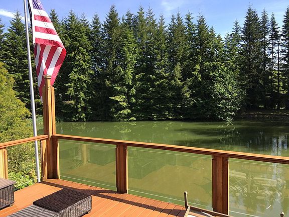 This property sits on a 4+- acre lot and is being sold with 2 additional adjoining lots. One of which is waterfront and the 2 of them combined add 3 +- acres for a total of nearly 8 acres. All of the acreage is groomed. This home sits on the Willapa River and features a 1 +- acre deep man made lake that holds rainbow trout and other native species. The lake has continuous water flow from a nearby stream and is swimmable in the summer. It is 13-15 feet at it’s deepest. The main house is about 2800 sq. ft and has an open design. Tall pitched ceilings are accentuated by a beautiful craftsman plaster texture and wood beams. The home was built in 1980 by a gentleman who owned a logging business. He had nearly all of the wood in the house specially milled. There is a lot of rough cedar in the house with a brick wall behind the wood stove. The floors are mostly slate rock and carpet. The family room looks out on a landscaped yard and the river. Two large cedar decks, one on the main level and the second on the upper level look out on the lake and landscape. There are 2 "kid" bedrooms and a master bedroom in the main house. There is a central vacuuming system and a geothermal heat pump that loops through the lake for it's heat exchange. The kitchen features and 11 foot by 4 foot central island with Thomasville cabinetry and a quartz countertop. The surrounding cabinetry is custom built of oak. The kitchen is built to accommodate a 60" range. (The French Range in the house was built for us in Paris by Lachanche. and is for sale as an add-on for $12,000.) The pantry room has cupboards, cabinets and shelves and is also where the washer and dryer are located. The third floor loft has large picture windows overlooking the landscape and lake. It also has a wet bar with cupboards and cabinets, a space for a refrigerator and ice maker.. From the loft you can step out onto the upper deck that also overlooks grounds and lake. This deck features clear acrylic panels for a better view. There is a speaker system that runs through the entire house and to the back patio. The guest house is attached to the main house by a 3 car carport. It features a small master bedroom and bath. It also has a kitchen and living room. It also features a tall pitched ceiling and has a massive solid beam running the length of the house. This property has mature landscaping and perpetual water rights for the lake. It is from the lake that the 12 station sprinkler system draws it water and the turf and foliage love it. This home sits in a somewhat prestigious neighborhood with some newly constructed homes nearby. It is a very quiet property in the country. There is a small general store within 2 miles and the closest town is 10 miles. For the outdoors types, of course there is trout in the lake. There are salmon and winter run steelhead in the river. 10 miles to the west is Willapa Bay and 15 miles further are the beaches where you can find great fishing, clamming and crabbing and all that goes along with the coastal area. This home and property is a paradise for the right people. Come and have a look. This package offers a beautiful "neck of the woods" to a family or would be an amazing summer home for the city dweller who wants an escape.