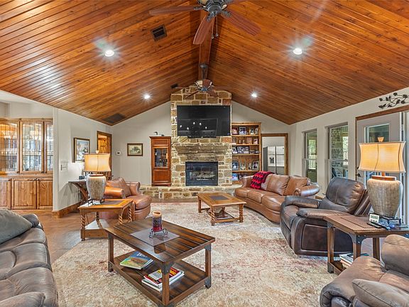 Welcome to this stunning custom lake-view retreat in the gated Texoma Bluffs community of Gordonville, Texas. Set on 2.18 acres overlooking beautiful Lake Texoma and Corps of Engineers land, this 3-bedroom, 4-bath home blends luxury and tranquility. Soaring vaulted ceilings and a wall of windows fill the living room with natural light and showcase panoramic lake views. The gourmet kitchen features walnut cabinetry, granite counters, and an expansive island, perfect for entertaining. The primary suite offers a spa-style bath and a secure walk-in closet. Outdoors, enjoy a covered patio ideal for gatherings, and lush landscaping designed for privacy. Built in 2011, this home delivers energy efficiency and modern comfort. Experience lake living at its finest—serene, sophisticated, and just minutes from Lake Texoma recreation.