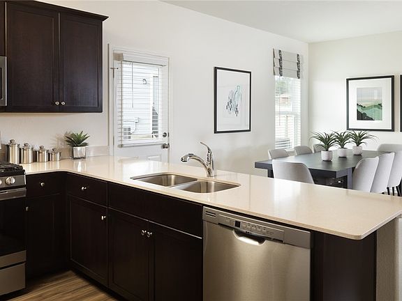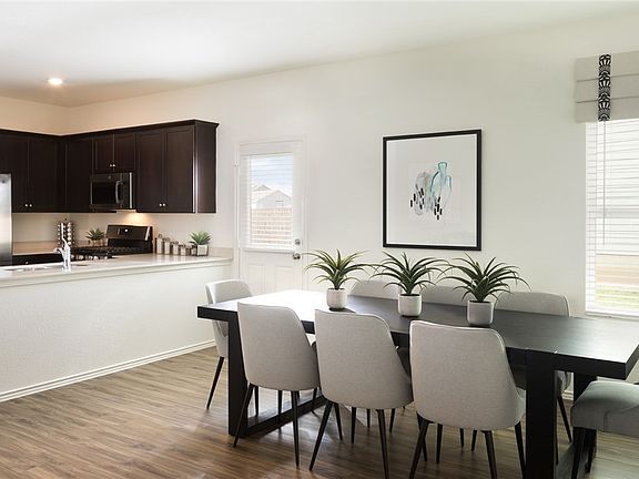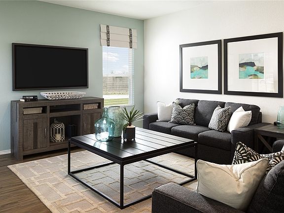 This single-story home has a smart layout that includes an owner’s suite with a full bathroom and walk-in closet, plus two additional bedrooms share a bathroom accessed in the hallway. The open floorplan at the front of the home includes a comfortable living room, dining area and open kitchen with a convenient island.