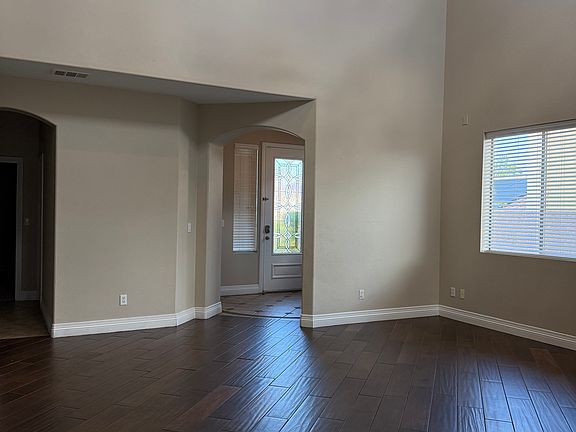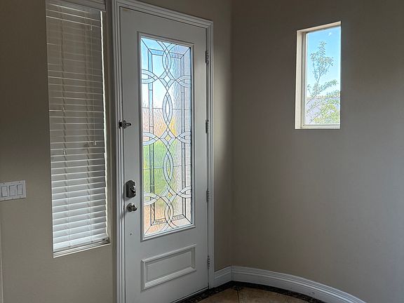 Beautiful two story home located on a small quiet culdesac in the gated community of Mountain Terrace in Henderson. Exquisite floor plan with 4 bedrooms that have 2 spacious master bedrooms. This home has 3 bathrooms including an oversized bath tub, shower and double sinks in one of the masters, a bath tub with double sinks in the other master, and a guest bathroom that includes a shower. Downstairs master bedroom is upgraded with rolling shutters for ultimate room darkening, security, and energy efficiency. This highly upgraded home offers impressive architecture including 30 foot living room ceilings, beautifully architecturally designed wall cut outs throughout, and a fireplace. The home has tile flooring and brand new carpet throughout which was just installed. Kitchen boasts magnificent granite countertops with white cabinetry and superior brand appliances. Stunning low maintenance landscape in front and backyard with lush palms in the backyard. Easy to clean epoxy coated garage flooring with top racks in the garage for storage. This property is located in a secure gated community with easy access to parks and walking trails and also grassy areas for pets throughout the gated community. Zoned for top-rated schools, close to shopping areas, and easy access to 215 freeway entrance. Move-in ready. At least 1 year lease.