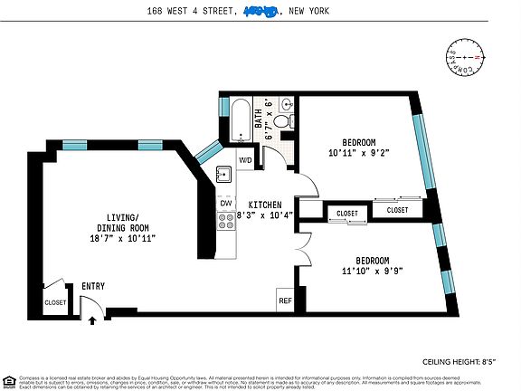 Beautifully renovated true two-bedroom in prime West Village location with in unit washer/dryer. See floorplan in the listing for apartment layout and room dimensions. Enter into an extra spacious sun-filled western facing living room that features beautiful hardwood floors, exposed brick walls and recessed lighting perfect for entertaining. Large entirely separate windowed kitchen with stainless steel appliances, dishwasher and microwave. Both bedrooms are light filled and spacious, one is king-sized and the second is queen-sized with large closets and overhead storage. Both bedrooms can also accommodate dressers. Windowed tiled bathroom. Centrally located half a block from the A/C/E/B/D/F/M trains and one block from the 1 train. The apartment is on the 4th floor and is a 3 flight walk up. Sorry, no pets.