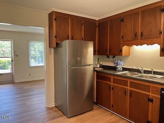 Discover this delightful 2-bedroom, 1-bathroom home located in a serene Carrboro neighborhood. Boasting recent updates and a welcoming atmosphere, this property is ready for you to move in! Step inside to find beautiful, newly installed LVP flooring that extends throughout the living areas and bedrooms, offering a clean and modern aesthetic. The bright and airy living room features a ceiling fan for comfort and ample natural light streaming in through updated windows with blinds.The efficient kitchen comes equipped with all essential appliances, including a refrigerator, electric range, microwave, and dishwasher. The warm wood cabinetry provides plenty of storage, complementing the dark countertops.Both bedrooms are comfortably sized, featuring ceiling fans and generous closet space with bi-fold doors. The home also includes a well-maintained bathroom off the hallway with a bathtub. Washer/Dryer included in unit! Outside, the property features a classic brick exterior and a neatly maintained yard. Enjoy the privacy of your own space with easy access to all that Carrboro has to offer. Walking distance to restaurants, shopping and the bus line. Yard maintenance, trash & recycling are included in rent, tenant pays utilities. Offered for lease by Park Real Estate Mgt. Contact Broker Nicole Galiger to schedule a showing! Over 18 per person $75 application fee and $100 per adult tenant move in fee.