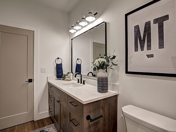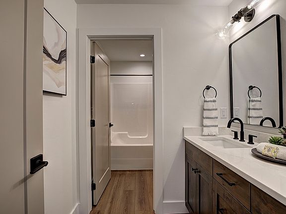 This stunning home blends bold design with everyday comfort. Spacious great room with striking tile fireplace and an expansive kitchen featuring a waterfall island and seamless granite slab counters/backsplash. A spa-inspired primary with ensuite with free standing tub, slab floor, floating vanity with under-cabinet lighting, and generous walk-in closet. The second bedroom reimagined into a moody lounge, perfect for relaxing or entertaining. Huge upper bonus room with dramatic accent wall, plus 2 secondary bedrooms, full bathroom with dual sinks. This home is the perfect balance of style, comfort, and functionality. 2025 Parade of Home.