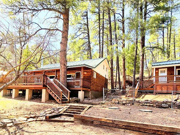 This charming fully furnished log sided cabin nestled below the Majestic Mogollon Rim is close to creeks and the 7 Rim Lakes. This amazing property features a 1,224+/- sq. ft. cabin with an open loft bedroom and one and a half bathrooms. The knotty pine interior and wood stove with a live edge juniper mantel provides a relaxing and cozy getaway. The adorable Casita boasts white aspen walls, dual pane windows, a kitchenette, and is complete with a covered deck to enjoy the tranquility of this amazing Mountain community. The tool shed attached to the Castia is a great work and storage area has the possibility to be remodeled to enhance the size of the Casita. This 0.27+/- acre lot has mountain views and is shaded with tall Ponderosa Pines and a mature apple tree in the front yard. The Sellers just installed a new septic system!!