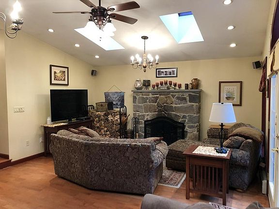 Charming 1882 Colonial home w/ 2 car garage situated on nice sized lot, just over a 1/2 acre! Home offers historical charm with modern amenities to include welcoming wrap around porch, 3 bedrooms, 2 full baths, a renovated 1st floor bath with laundry, gorgeous family room w/ skylights & fireplace, kitchen with island, formal dining room w/ hardwoods & built-in cabinets, sun filled living room also w/ hardwood flooring! Three bedrooms and full bathroom upstairs. Family room addition in 2004 w/ French doors leading to nicely landscaped yard w/ above ground heated pool, garage w/ storage area above, small pond, and storage shed.
