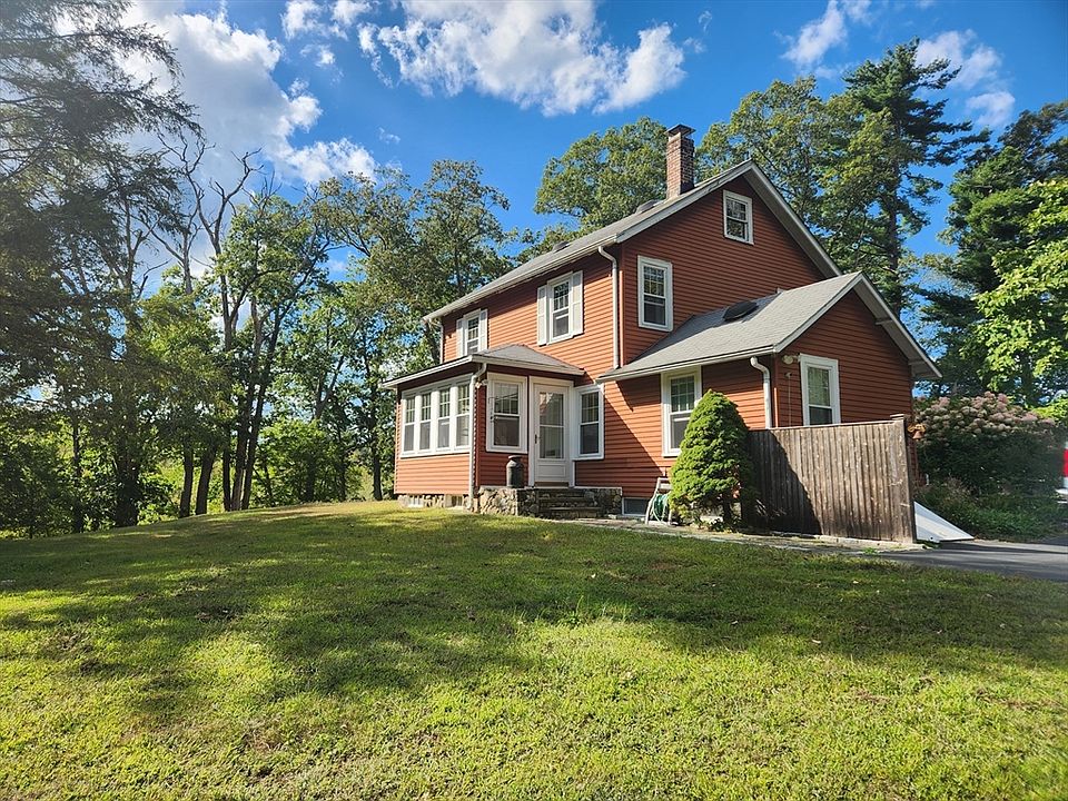 Delightful property set well back on a charming country road. This home has a ton of character and offers a huge mudroom entry and updated kitchen with dining area, open to family room with fireplace, including woodstove insert. There is a living room, cozy year round sunroom, full bath and first floor bedroom/office space. The second floor offers 3 additional bedrooms and another full bath. The grounds are lovely and private with a spacious patio for large gatherings.