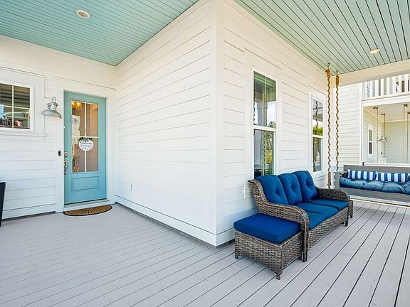 Check out this four bedroom, 2,356 SF, single family detached home with two full bathrooms and two half bathrooms, one of which is located in the heated and cooled detached garage. This former model home is located on a prime corner lot right down from the new Maidstone Pool, and a short golf cart away from so much more.This home welcomes you with double front porches (recently recaulked and repainted) with a sliding gate on the lower level. As you walk inside, you will notice the primary bedroom that overlooks the front porch with a full en suite. Down the entry hall are the laundry and first half bathroom before entering the open dining/kitchen/living area. With a large cooking island, gas fireplace and lots of natural light, it shows like it is in a magazine.All windows on the lower level have Lutron electric blinds on them with switches and can be programmed to your liking. Off the dining area there is an additional rear patio with another sliding gate that opens up to the large yard space with an extended parking pad. There is also the detached garage which is heated and cooled with its own HVAC system and contains an additional half bathroom. Back inside, on the second floor, there is a large loft space that provides access to the second story front porch, three guest bedrooms all with walk-in closets and a full bathroom. This home has been tastefully updated throughout and is ready for a new owner to make it their own!