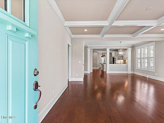 Welcome home to this beautiful 2018-built craftsman-style retreat, offering the perfect blend of coastal charm and modern elegance. Located just minutes from either Ocean Isle beach or Sunset Beach, this home provides the ideal setting for beachside living. Step inside to a thoughtfully designed one-level, split floor plan, with plantation shutters throughout and a light, airy beach cottage feel. The spacious living room with a stunning coffered ceiling and fireplace, creating a warm and inviting atmosphere.