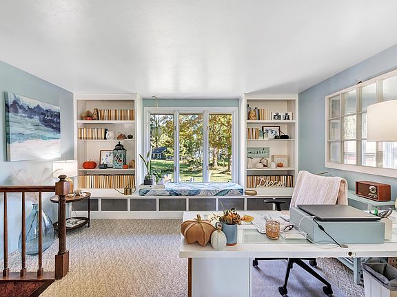 Gas fireplaceInvisible fencingCustom-built-in bookcasesCozy window seatPark-like backyard