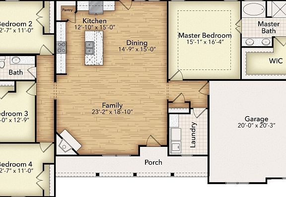 The four-bedroom Caddo floor plan is designed with entertaining in mind. It starts with the curb appeal where homeowners can choose between seven distinctive elevations that show your personality the minute your guests arrive. Each includes several large windows and breathtaking stonework. From there, visitors pass through the covered porch to see a stunning open gathering space that combines the family room, dining area and gourmet kitchen. An oversized island serves as the centerpiece of the space allowing you to command the room while you cook, whether it's for close family and friends or a holiday crowd. A door to the backyard extends your entertaining and adds year-round flexibility facing the cozy fireplace at the opposite end of the main living space. The Caddo also provides much-needed privacy with a owner's suite in the back right corner behind the garage accessible through a small back hallway. This spacious suite includes double vanities in the bathrooms, a separate water closet and a large walk-in closet to give you ample storage for blotches and accessories. And, the laundry room is located directly across the hall from the owner's suite making for easy chores or a quick drop on the way in through the garage. Three more bathrooms are located on the opposite side of the home connected by a secluded hallway and sharing a full bathroom. Each of the three has a large closet with double doors.