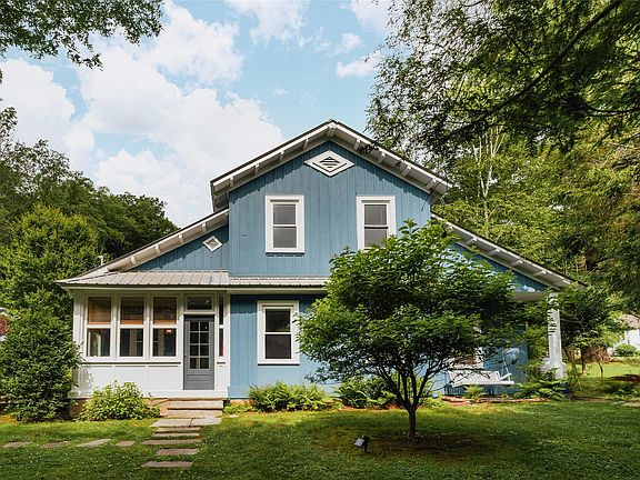Overbrook House is a design-forward Catskills retreat on nearly an acre that lives much larger thanks to multiple eye-popping indoor/outdoor spaces including a dreamy separate Guest Studio (not included in square footage). The meticulously styled main house features a den paneled with reclaimed barnwood, while the more formal living room's gas fireplace is great for ease of use and tidiness. A bright enclosed porch welcomes you inside, and the cheerful country kitchen with open shelving flows into a spacious dining room. French doors open to a covered outdoor patio with wood ceiling, perfect for dining and lounging. Three bedrooms (one on the main floor) and two full baths offer flexibility, and all rooms reflect a cohesive design aesthetic. The detached Guest Studio upstairs in the barn feels like a designer treehouse, with a full kitchen, bath, queen bed and lounge area surrounded by windows. The heated pool with cedar deck and auto-cover is a showstopper, complemented by a restored 1957 Airstream, custom fire pit, and multiple areas for al fresco dining. Tucked behind the barn is “the grotto” — a hidden nook with hot/cold plunge and a spot to dine or unwind. Cross a private footbridge over Buck Brook to reach Callicoon Hills for a meal or live music at the summertime band stand. Offered furnished (with exclusions); adjacent buildable half-acre lot also available.