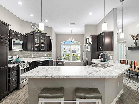 Great open floor plan, large private lanai, spacious rooms, gourmet kitchen, expanded 2 car plus golf car garage, custom landscaping and textured concrete driveway. The Villages lifestyle provides endless opportunities for recreation and clubs in an active retirement community.
