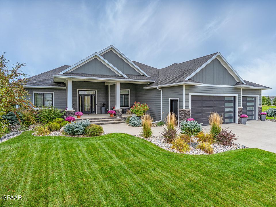 Stone fireplaceHeated garageWet barCustom millworkGourmet kitchenGranite countertopsDual vanities