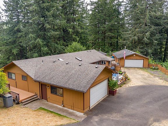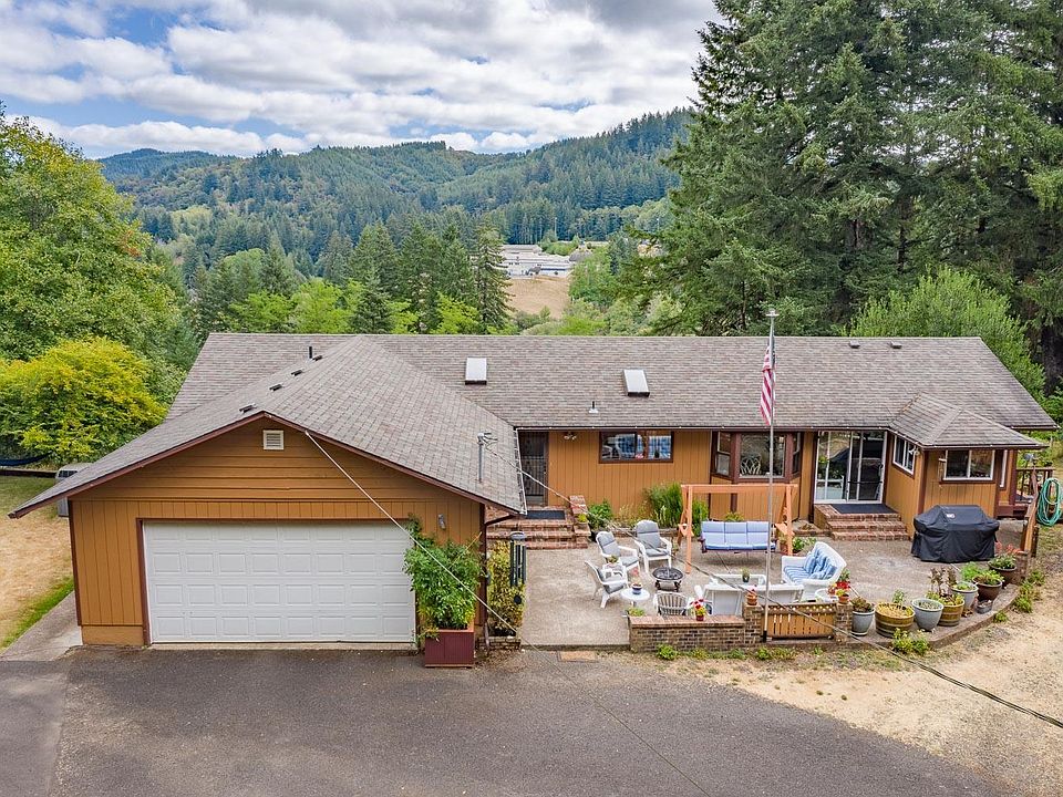 PRICE REDUCED by $49,000 !! House is loaded!! View of valley and coastal mountains from both decks and living areas. Very private and peaceful location w/5.45 acres-close to schools. Interior: central vacuum, bay window in dining area, skylight in kitchen and entrance area, two propane fireplaces, propane kitchen stove which can easily be replaced by electric (220 behind stove). Like new kitchen appliances. Flooring-updated vinyl & linoleum and carpet like new. Master bedrooms-en-suite bathrooms. Interior living space also includes sun-room/billiard room and bonus office room. Exterior: property includes barn with RV parking, two-car attached and two-car detached garage with extra storage bonus room, two patios, water feature, two large decks, gazebo, 16ft electric ga