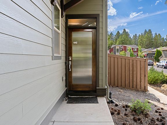 Don't miss this contemporary home located on a corner lot on Bend's desirable Westside in the Newport Landing neighborhood. Conveniently located just minutes from Downtown, Newport Market, Galveston, Northwest Crossing, COCC, Shevlin Park, schools, shops, restaurants, and trails. Main level offers a great room floor plan with beautiful gas fireplace, spacious kitchen with large breakfast bar and dining area, engineered plank floors, designated office with built in desk and cabinetry and powder bath. Upstairs is the primary suite, laundry room and 2 additional bedrooms with full bath. Relax in the private fenced back yard with a covered patio, gorgeous gas fire pit and raised garden beds. 2 car garage with shelving, shop area and EV charging station. This home also has solar panels installed which make for low electrical bills.