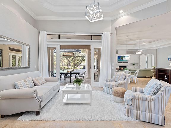 Don't miss this idyllic estate home that can be used as one unique compound or two separate homes - perfect for multi-generational living or large extended family gatherings. Enjoy plenty of privacy with an expansive tree-lined lot and a gated driveway. This impeccable 9 bedroom + guest house has it all. The open concept living area provides glass doors that allow a seamless flow to your backyard paradise. Sure to delight the avid cook, 2 gourmet kitchens indulge you with top-notch SS appliances, handsome cabinetry, and gleaming granite countertops. This residence boasts 2 generous master suites with gorgeous en-suites sure to impress. The additional well-sized bedrooms, await your family or overnight guests. The screened lanai is an excellent place to have a family gathering where you can enjoy a dip in the shimmering pool or a nice relaxing soak in the spa. Other amazing details include whole house reverse osmosis system, volume ceilings, elaborate millwork, and so much more! Don't miss the guest house with carport. This home has too many amazing features to list. Come call this incredible residence your own before someone else does!