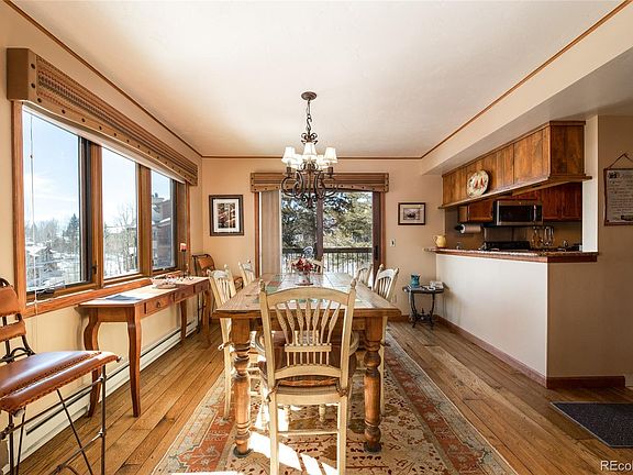 This lovely 2 BR/2 BA nicely furnished condo has so much to offer. It is located in the community of The Ranch at Steamboat Condos which is tucked in a quiet neighborhood that gives it a real sense of privacy. The owners have upgraded the unit a couple of times over the years. Oak wood flooring in the living area and dining area, granite countertops in the kitchen and baths, and new energy- efficient windows throughout are a few of the upgrades. A real plus for this unit is that it is an end unit which has a deck off the dining area and another off the living area. This unit has NOT been in the rental pool for many years. The premier on-site management company and HOA have an excellent history of working together to maintain this property. The Ranch has many sought after amenities that includes beautiful maintained grounds, a pool, several hot tubs, on-site check-in, exercise facility, tennis courts, and seasonal shuttle. The HOA owns the adjacent open space to preserve the views that span from down valley to the flat tops and views of the ski mountain. It is a real pleasure to show