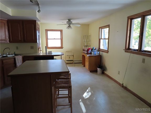 Room to Roam ! Sided 2 bedroom, 1.5 bath Ranch in Elma. Country Kitchen with island , appliances and pantry. Front and rear decks. Detached 2.5 car garage with metal roof. L-shaped 9+ treed acre lot. Iroquois School District.